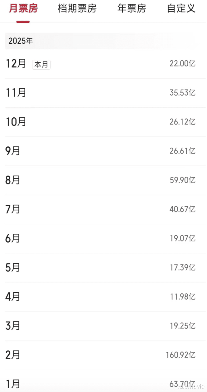 如果看月票房的话,2025年的端倪就露出来了。