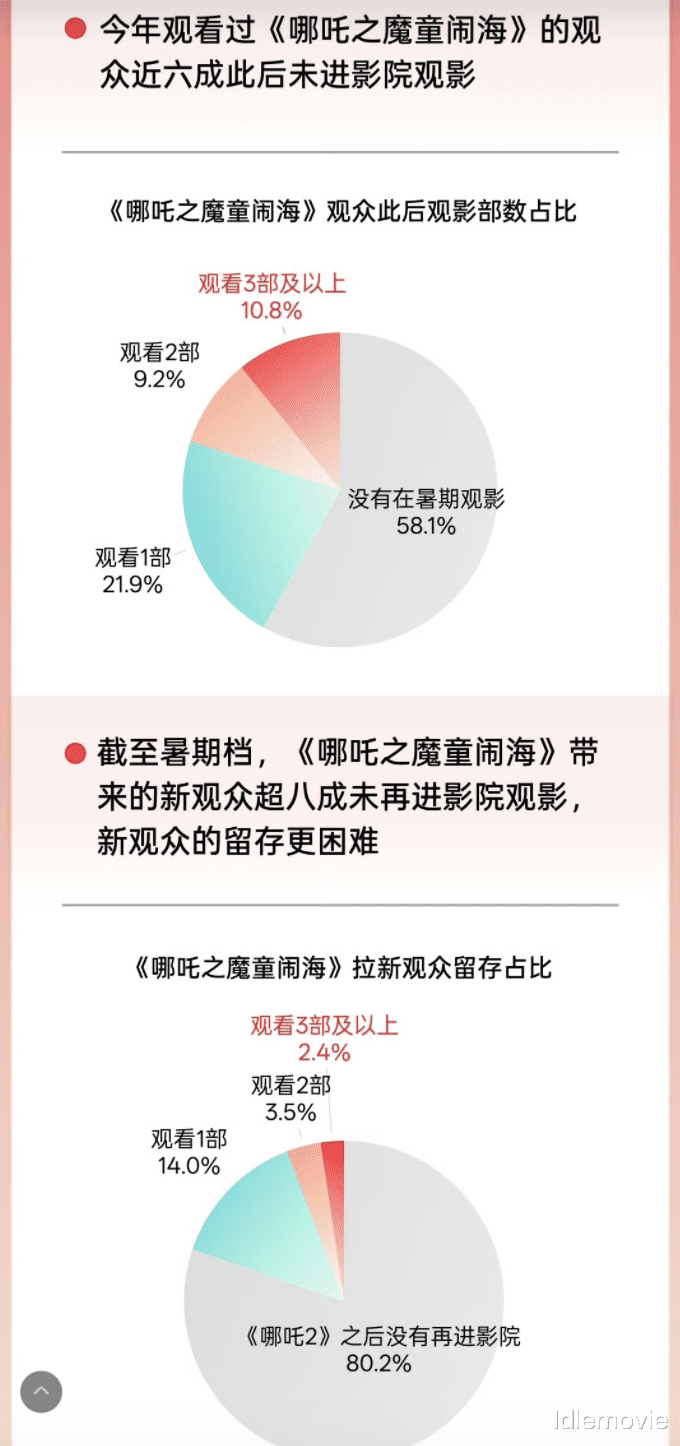 若不是强情绪型电影,很多人根本不会在意有没有新片上映,如看过《哪吒2》的观众近六成此后未进影院观影,截止暑期档,《哪吒2》带来的新观众超八成未再进影院观影。